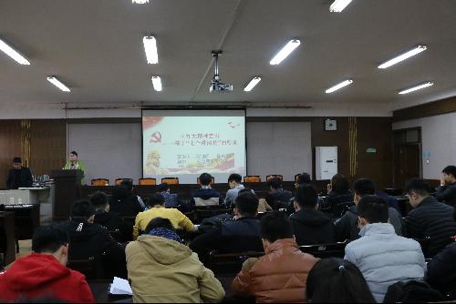 会议开始,由马香丽老师进行主持,说明本次活动的举办目的及意义,强调了学习“十九大”的必要性与重要性。接着,殷旭辉教授以七个“讲清楚”为基础,为同学们介绍了“十九大”的背景及现状,并从不同的角度深入剖析。从基础的文字理论到深层次的发展意义,从各项政策领悟“十九大”会议精神,深入体会我党从建立之初,到现在取得的巨大进步,客观分析了我党未来发展面临的问题以及机遇,让同学们对“十九大”精神有了初步的认知。