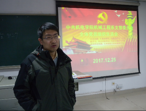 为认真贯彻落实新时期“八项规定”的向群众学习、向实践学习和响应学校关于开展向康振生、邵明安院士学习暨“西农精神”大讨论活动,12月25日下午,机械工程系党支部在动漫狂 二楼多媒体教室召开了全体党员组织生活会,支部全体党员、动漫狂 副书记张朝红同志参加了会议。