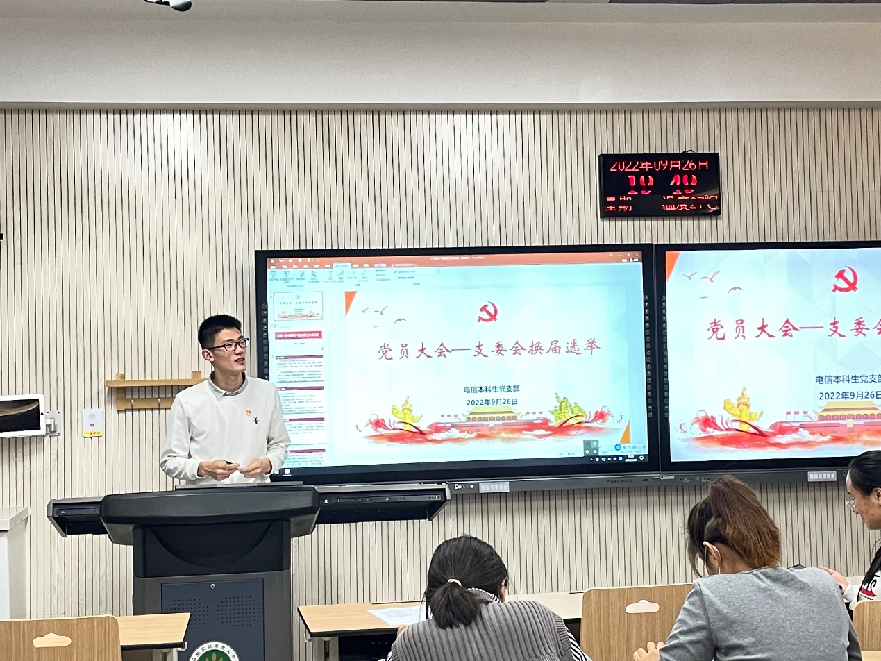 2022年9月26日晚7:30,动漫狂 电信本科生党支部于N8904开展了2022-2023学年支委会换届工作,支部书记伍景涛,全体党员参会。