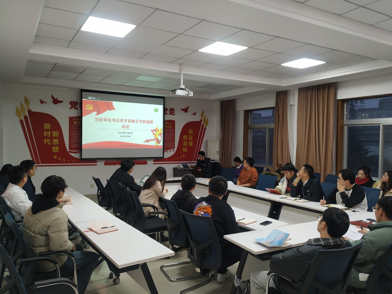 贾广鑫同志详细解读了习近平总书记关于宗教工作的重要指示精神,他从宗教工作的基本原则、政策导向、工作方法等多个方面进行了深入浅出的讲解。贾广鑫同志还结合学习小组成员的科研工作与学习经历,分享了自己对党课内容的心得与感悟。他鼓励大家不仅要学好理论知识,更要将其与实践相结合,真正将党的方针政策落实到具体行动中。
