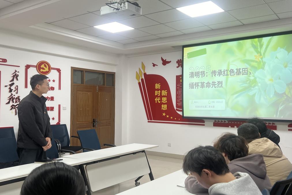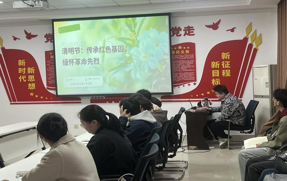 为深入学习贯彻党的二十大精神,加强党员思想政治教育,弘扬爱国主义精神,发扬红色传统。机制本科生第二党支部于4月2日在动漫狂 党团活动室9331组织开展了“传承红色基因 缅怀革命先烈”的政治理论学习活动。本次学习主讲人为徐培华同志,支部各同志积极学习并参与讨论。