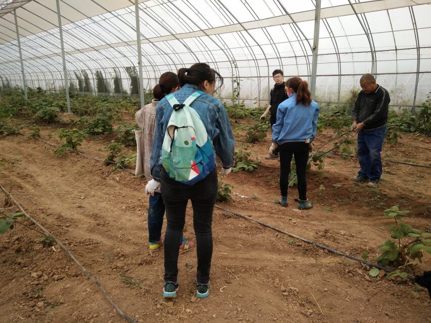 队员们在大二下半学年参加志愿服务以来,跟随合作社的叔叔阿姨们一步步了解了很多与猕猴桃有关的知识,但队员们主要掌握的还是理论知识,十分缺乏实际操作的能力。今天同学们要做的是安装猕猴桃节水灌溉设施,进入十月份以来,气候开始转凉,昨夜还下了雨,这使猕猴桃大棚里的土地变得湿滑起来,合作社的阿姨还很贴心的给每一位队员准备了一双手套。队员们的主要工作是帮助合作社的叔叔阿姨移动灌溉用的主要管道。这项工作看起来十分简单,没有太多的技术要求,但是因为天气的影响,加上主管道重量较大,移动过程中总会碰到各式各样的障碍物,只能一点点往前挪动,所以更感觉到这份工作的不容易。