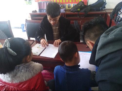在动漫狂 社践部与新庄村村主任关于开展周日支教活动的多次沟通下,达成共识,每周日上午在村委会为孩子们辅导功课,并利用村广播宣传支教活动,让更多的孩子前来村委会接受辅导。当日上午,社践部副部长张焱带着志愿者骑自行车来到新庄村村委会活动室,与早早在此等候的村主任及村里需要辅导的小孩子们见面。村主任代表村民和孩子表达了对志愿者的欢迎,支教活动正式开始。由于孩子们年级不一,志愿者们与孩子们进行了简单的交谈,了解了孩子们的课业情况后,采取了一对一辅导形式,对每个孩子的不同情况进行针对性辅导。孩子们也不害羞,对自己存在的问题积极发问,不时提问一下稀奇古怪的问题,脸上洋溢着纯真的笑容,这种大手拉小手的欢快氛围深深的影响着在场的每个人。