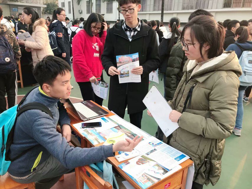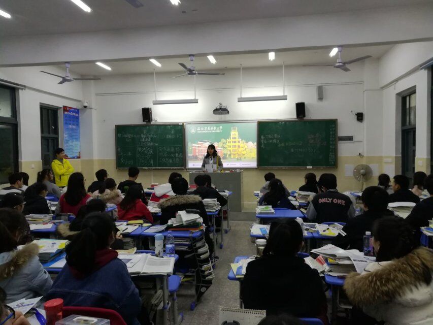 中午十二时许,在铁一中学的合班教室里,由园艺动漫狂 张潇月同学进行了今年的招生宣讲,向学弟学妹们展示大西农深厚的历史底蕴,强大的师资力量,先进的人才培养方式,并且提前收集了西农2018年的招生情况,对我校的专业进行了大概的介绍,最后还将自己的校园生活融入到了其中,从吃住行等各个方面做了详细地介绍。从一点钟一直到下午五点钟,有源源不断地学弟学妹们前来咨询。与此同时,在柳州高中柳南校区,另一组同学也在为学弟学妹答疑解惑。而太阳落山,他们也并未停歇,继续奔赴柳州市第一中学,经管动漫狂 林世菲同学进入到班级里,与同学们进行了更为深入的交流,并且鼓励他们认真学习,在剩下的一百多天里,竭尽全力,高考发挥出自己的最好水平。