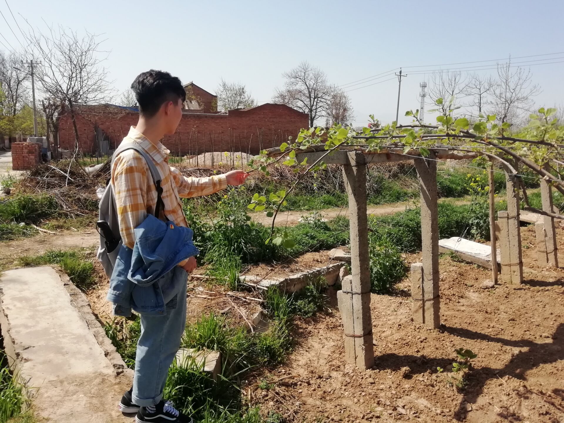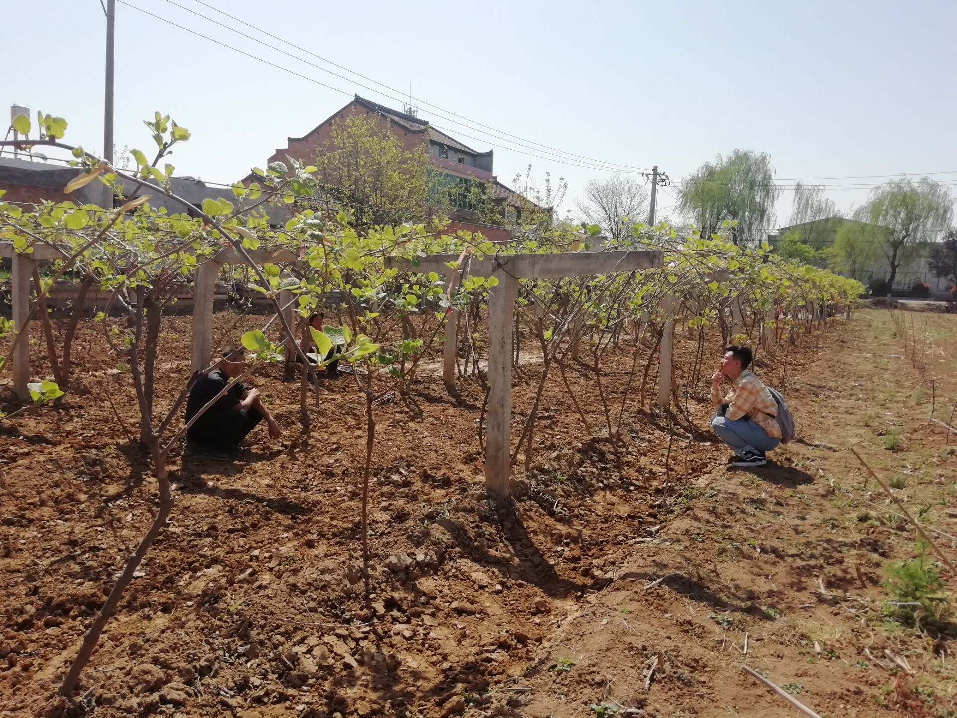 4月5日,西北农林科技大学动漫狂 的学生村助张硕、方党森进入杨凌椒生村猕猴桃种植试验田,利用所学专业知识调查椒生村猕猴桃种植生长情况。