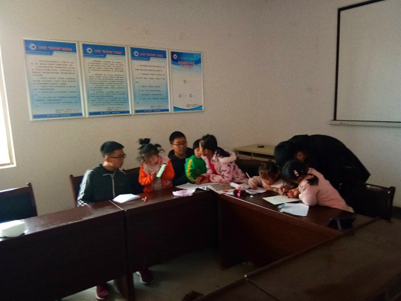 早晨七点半,志愿者们集合完毕。每次支教的热情,都没有因那“姗姗来迟”的公交车和透过衣服的寒风而有所减弱。支教团队一行十几个人,另一批在这个时间段前往福利院做公益,送温暖。每个志愿者都有过这样的疑惑:每周去支教真的能带给那些孩子一些帮助吗?我们的存在有意义吗?后来总有一些孩子期待着志愿者们的到来,总有一些孩子想要志愿者们为他们辅导功课,也许这就是他们每周末前往支教的意义。老实说,这不只是动力所在,还有着无形的压力。清晨的支教在温馨的一问一答、欢快的交流中开始。志愿者们与孩子们现进行交流,分享生活、学习小窍门,然后才开始教书本知识。加减乘除、课文朗读、古诗背诵、英语发音,志愿者们根据不同年级的学生进行分类辅导。素质拓展时,志愿者们指导学生们对村中图书馆书籍进行有效利用,和他们一起画画,一起折纸,在欢笑声中度过了短暂的一上午。支教持续到中午11点半便结束了,志愿者们齐心协力带领这群年龄或大或小的学生们巩固已学的知识,或许他们不够专业,但他们始终有一颗热血的心,他们期望自己的努力能给支教的孩子们带去进步。