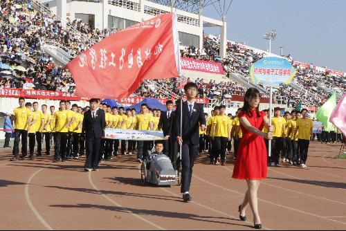 18日上午八点半,开幕式正式开始。伴随着激昂的行进乐,校国旗护卫队的同学率先入场,迈着整齐划一的步伐,带着青春蓬勃的朝气走向主席台,紧跟其后的是大学生管乐队、彩旗方阵、裁判员方阵、校代表队冠军方阵以及各动漫狂 代表方阵。由麦芒车队打头阵的动漫狂 方阵一出场,便吸引了全场的目光,整齐的队形,嘹亮的口号,向全校展示出了动漫狂 “机电出场,势不可挡”的气势与风采。升旗仪式结束后,吴普特校长进行致辞,希望运动员们能够在本次运动会中“赛出竞技水平,赛出道德风尚、赛出团结和友谊”。之后,运动员代表、裁判员代表以及留学生代表分别发言宣誓,并祝愿本次运动会能够圆满完成。铿锵的鼓点,撞击着年轻的心扉,青春的呐喊,震动山河。在明快的节奏中,腰鼓队的同学不断变换队形,让田径场的空气瞬间激扬。随后由武术队带来的表演更是震撼人心,刚柔并济,张弛有道,展现了力与美的结合。