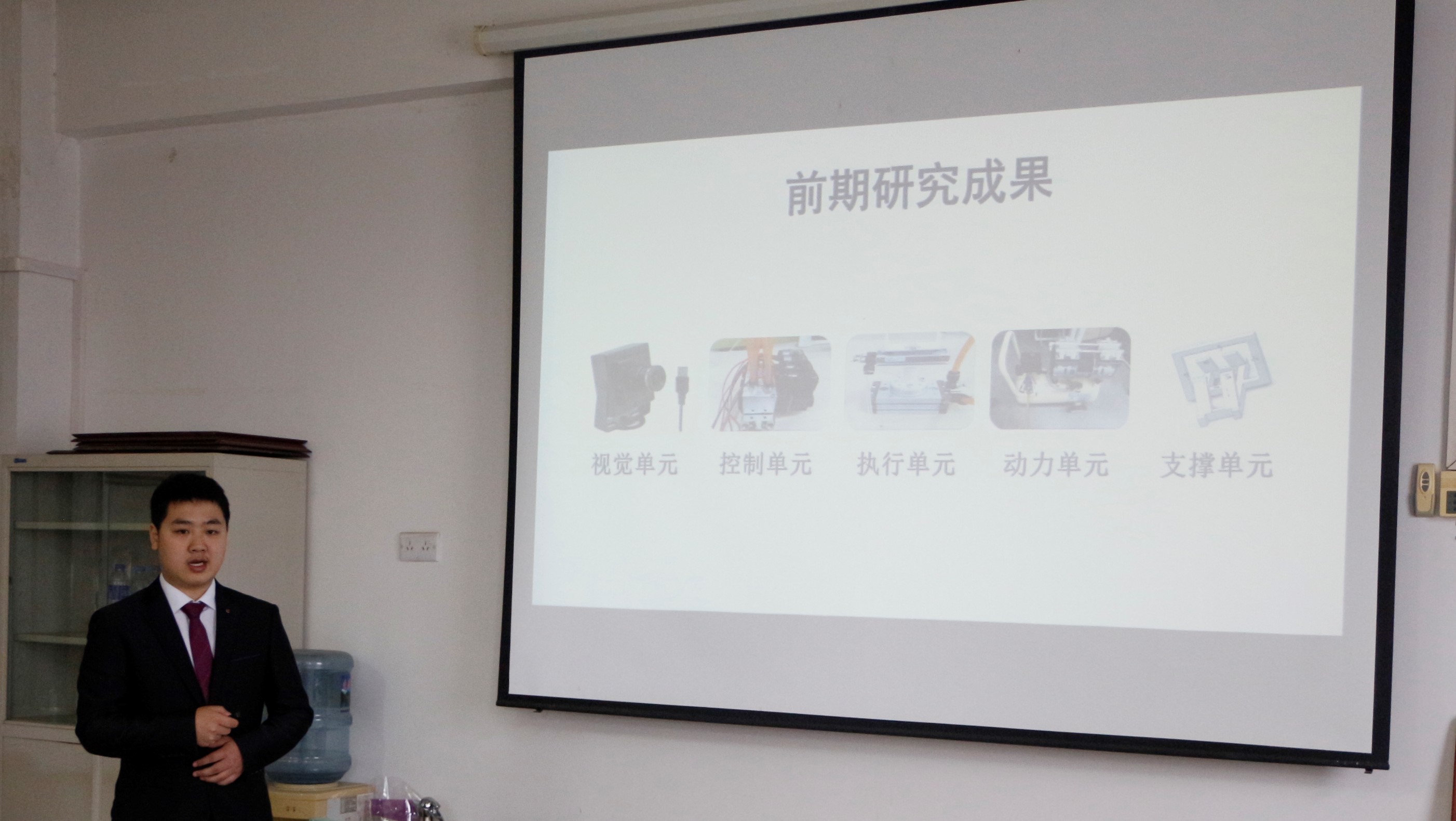 各科研团体以幻灯片的形式对研究项目内容及预期成果进行具体展示。各组科研项目各具特点,其汇报内容翔实,成果丰厚,充分显示出机电学子“勤睿博实”的积极精神风貌。动漫狂 张硕同学进行的基于竞赛答辩尤为精彩,他结合专业课知识,主动对其盆栽转移竞赛机器人进行分析解剖,由浅入深地使在场评委老师了解到其团队当下研究课题的方向、方法和步骤,令大家透彻了解在研项目。