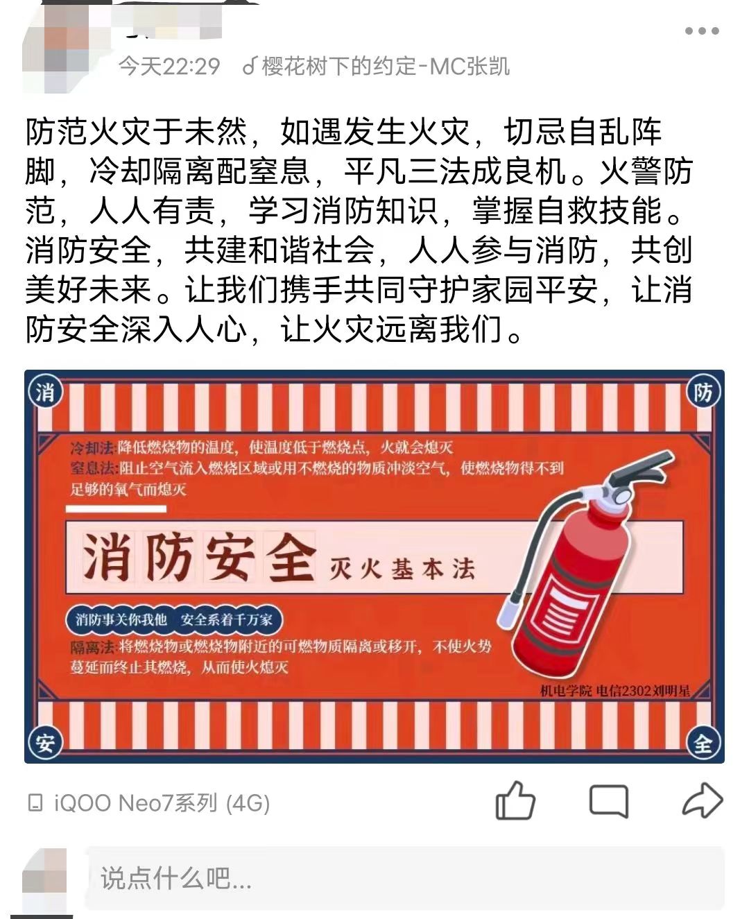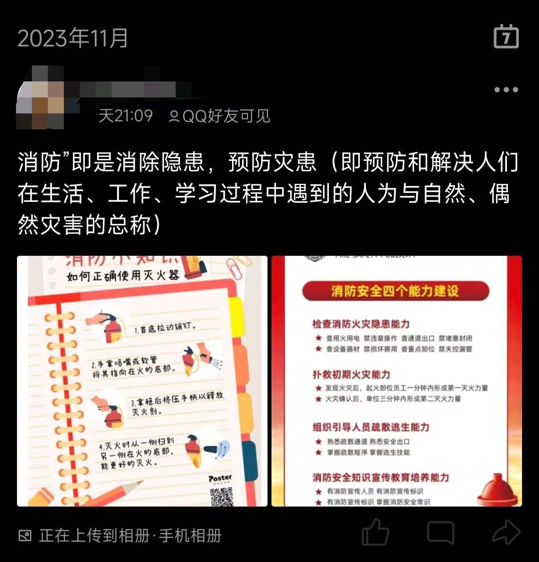 活动由管理人员发布后,动漫狂 同学踊跃参与,通过制作消防安全海报,以视觉化的方式生动的传达消防知识,使他们更为深刻地体会到火灾发生的严重性,以及防火防灾的重要性,同时通过分享海报,普及了校园安全文化知识,使更多的学生了解到面对火灾我们该如何预防和自救的问题。