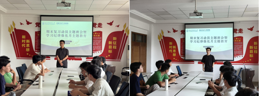 6月8日下午四点半,机械2407班在动漫狂 9331会议室举办了期末复习动员主题班会暨学习纪律强化月主题教育。本次班会旨在传承学习经验,强调考风考纪,提醒同学们专业分流、工训注意事项,全班同学全员全程参与。