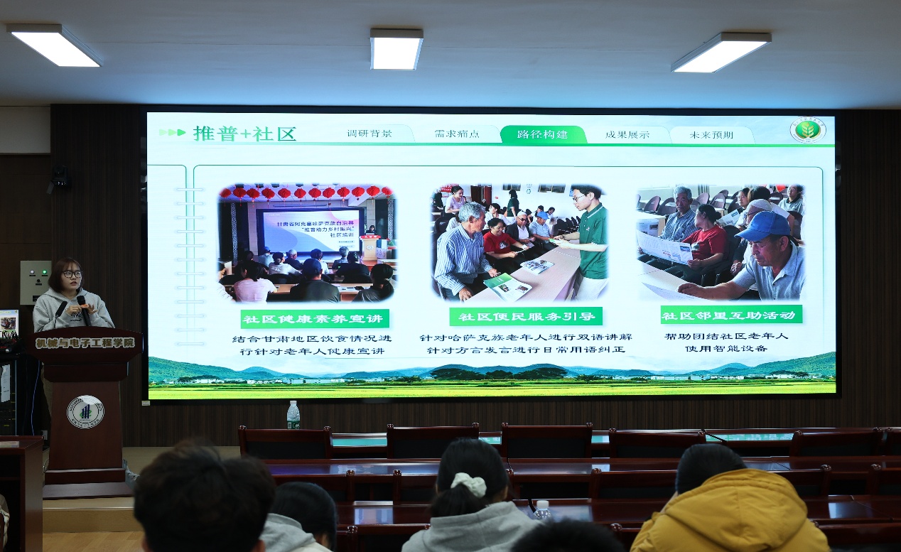 最后,来自马克思主义动漫狂 的迪娜·波拉提同学分享了在以语言文字为桥,赋能民族地区乡村发展活动中,她们对区域经济文化现状深入社区调研的经历。她们先构建了“推普+”六维融合模式,有条理地进行调研、人才、文化、社区、实践、产业六个方向开展活动,为我们呈现了以语言的力量助力乡村振兴的完整途径。