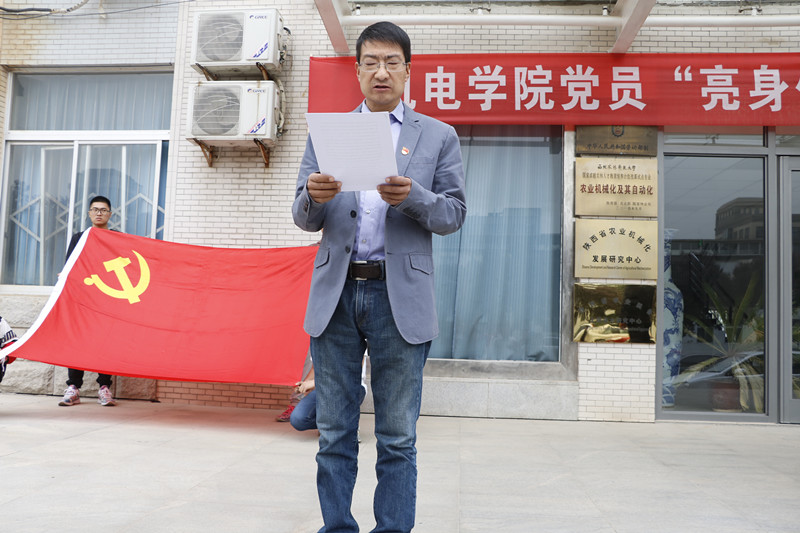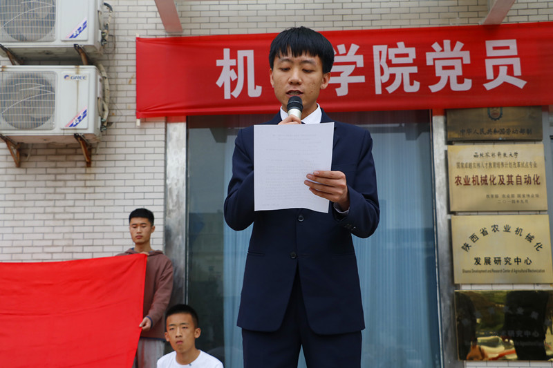 来自学生第六党支部的党员代表郝宇君同学向全体学生党员发起“亮身份·践承诺·树形象”的倡议,倡议党徽神圣戴胸前,使命崇高记心间。要把佩戴党徽作为一种自觉行动,把亮出身份作为一种无声承诺,把作出表率作为一种目标追求。通过戴党徽,亮明身份,勿忘使命;通过戴党徽,直面监督,转变作风;通过戴党徽,树立形象,提升素养。