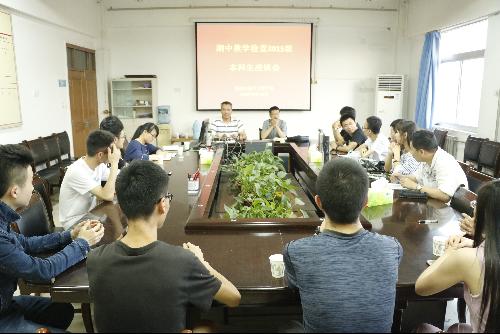 为巩固“学风建设年”阶段性成果,认真落实期中教学检查工作,加强师生间的交流与沟通,解决学子们在学习中遇到的实际问题,动漫狂 于5月16日晚上7点在动漫狂 二楼会议室顺利举行了2015级本科生期中教学检查座师生座谈会。动漫狂 副院长陈军教授、党委副书记张朝红老师、2015级辅导员以及部分2015级本科生代表参加会议,会议由张朝红老师主持。