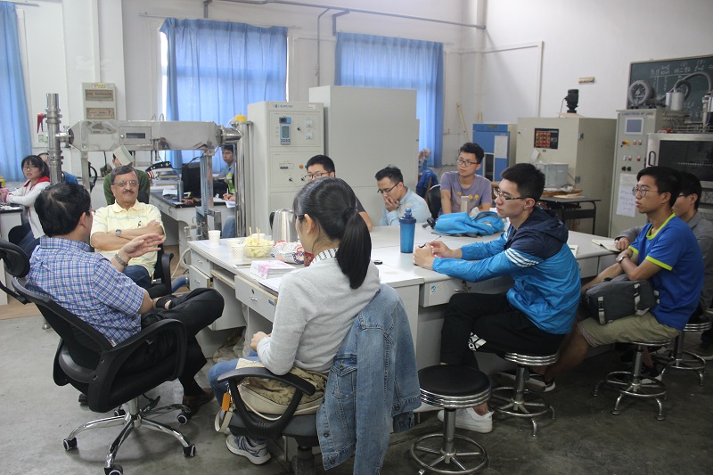 5月27日,在王绍金教授的陪同下,Ramaswamy 教授参观了农产品加工实验室并且聆听了实验室的硕士研究生就各自的科学研究做的学术汇报,每个学生汇报后,Ramaswamy教授就汇报的内容对研究生进行了具体点评与指导。