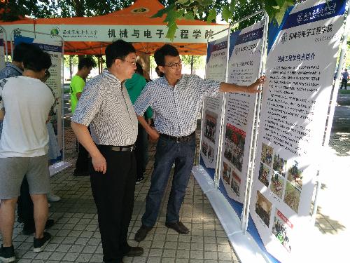 在北校区8号教学楼西侧举行了2018年第一场研究生校内招生宣传活动。王绍金院长、黄玉祥副院长、导师代表及研究生办工作人员参加宣传活动。