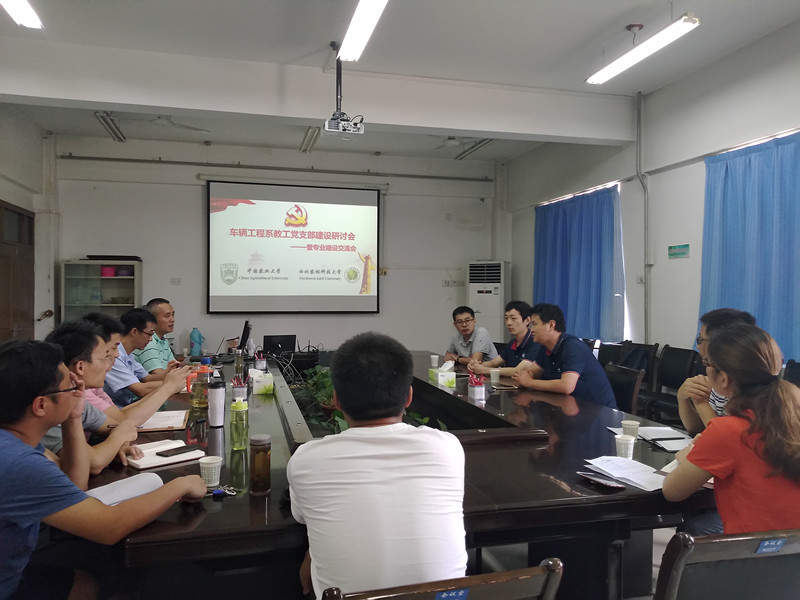 2018年8月12日,中国农业大学工动漫狂 车辆工程系教工党支部书记张学敏、支部成员杜岳峰及李臻来动漫狂 与车辆工程系教工举行了党支部建设及专业建设交流会,会议在动漫狂 二楼会议室举行。动漫狂 副院长陈军、车辆工程系党支部书记靳红玲,系主任张军昌、副系主任侯俊才以及车辆工程系其他老师参与了交流会。
