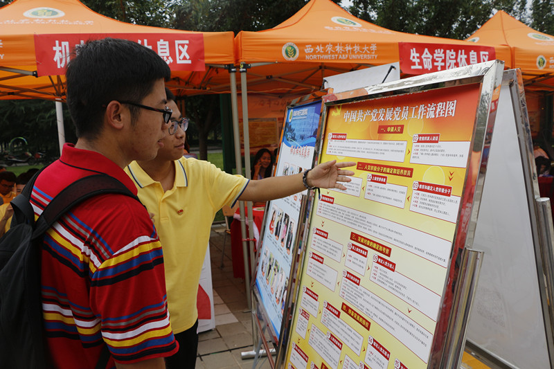 “刚到动漫狂 迎新点注册完,‘党哥哥’就交给我一份动漫狂 的暖心集装‘大礼包’,内含入学指南、大学生手册、大学生活攻略等‘密钥’,我和父母还认真参观了迎新点展示的大学生入党贴士和优秀党员先锋模范展区,关注了动漫狂 微信公众号“西农动漫狂 ”,看到了军训安排、校历日程、校园新变化等入学必备技能信息,而且我们很多萌新还上墙了,无比激动!这样贴心的服务让我在他乡有了‘家’的感觉。”机械类1807班王浩然如是说。