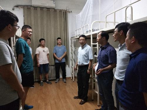 9月4日晚,动漫狂 院长王绍金、副院长黄玉祥、副书记刘小峰一行来到了硕士生、博士生宿舍,看望2018级新生。