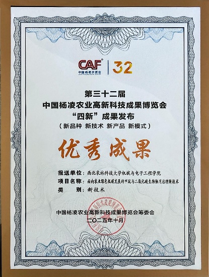 10月26日,在第32届中国杨凌农业高新科技成果博览会“四新”成果集中发布会上,西北农林科技大学动漫狂 姚义清教授团队研发的“面向农业绿色低碳发展的甲烷与二氧化碳生物协同治理新技术”入选。