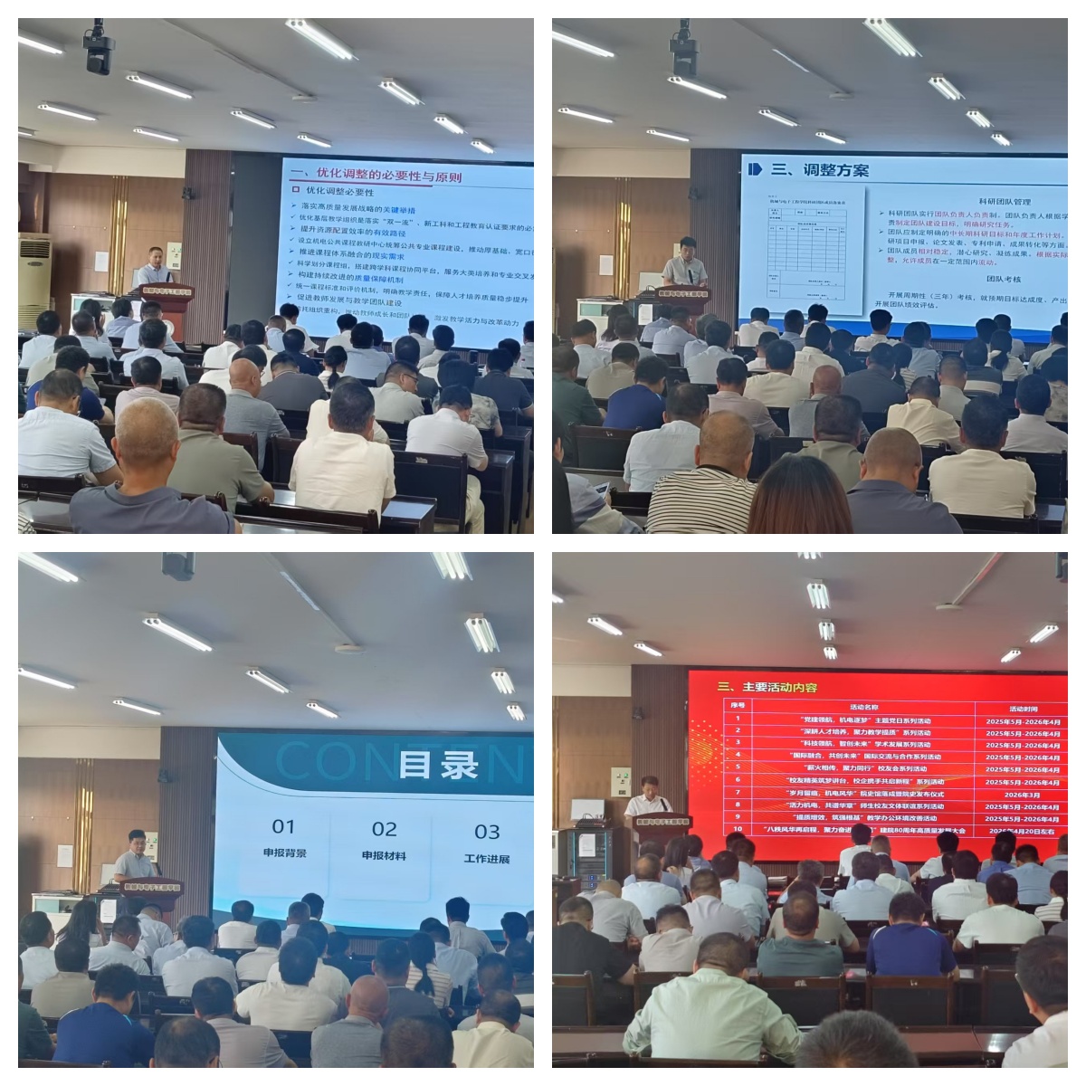 副院长张卫国就动漫狂 基层教学组织调整方案作了详细汇报。他指出,面对新工科建设与人工智能深度融合的教育变革,本次优化调整以“专业建设导向、课程体系优化”为原则,构建了“系(机电公共课程教研中心)-课程组”两级管理架构,旨在提升资源配置效率,推动课程间的协同与交叉融合,强化专业内涵建设,进一步打通人才培养“神经末梢”,激发基层教学活力,为实现“厚基础、宽口径、强能力”的高素质人才培养目标提供坚实制度保障。