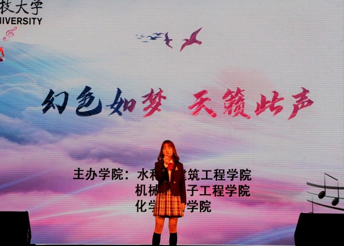 晚19点30分,比赛在机制1802班潘达宇的一首深情流露的《说谎》中开始了,台下氛围热烈而澎湃。今晚,歌声从这里传出,音符从这里飘扬,青春从这里激荡,梦想从这里起航。比赛过程有序进行着,选手们用他们极具感染力的歌喉笼罩了整个现场,感染观众的心灵,同学们热情高涨,呐喊着为上台的每一位选手加油、助威。忧郁伤感的《认真的雪》,灵动欢快的《The Show》,充满感慨回忆的《儿时》……一首首饱含深情的吟唱,将表演现场的气氛带到一个个高潮!