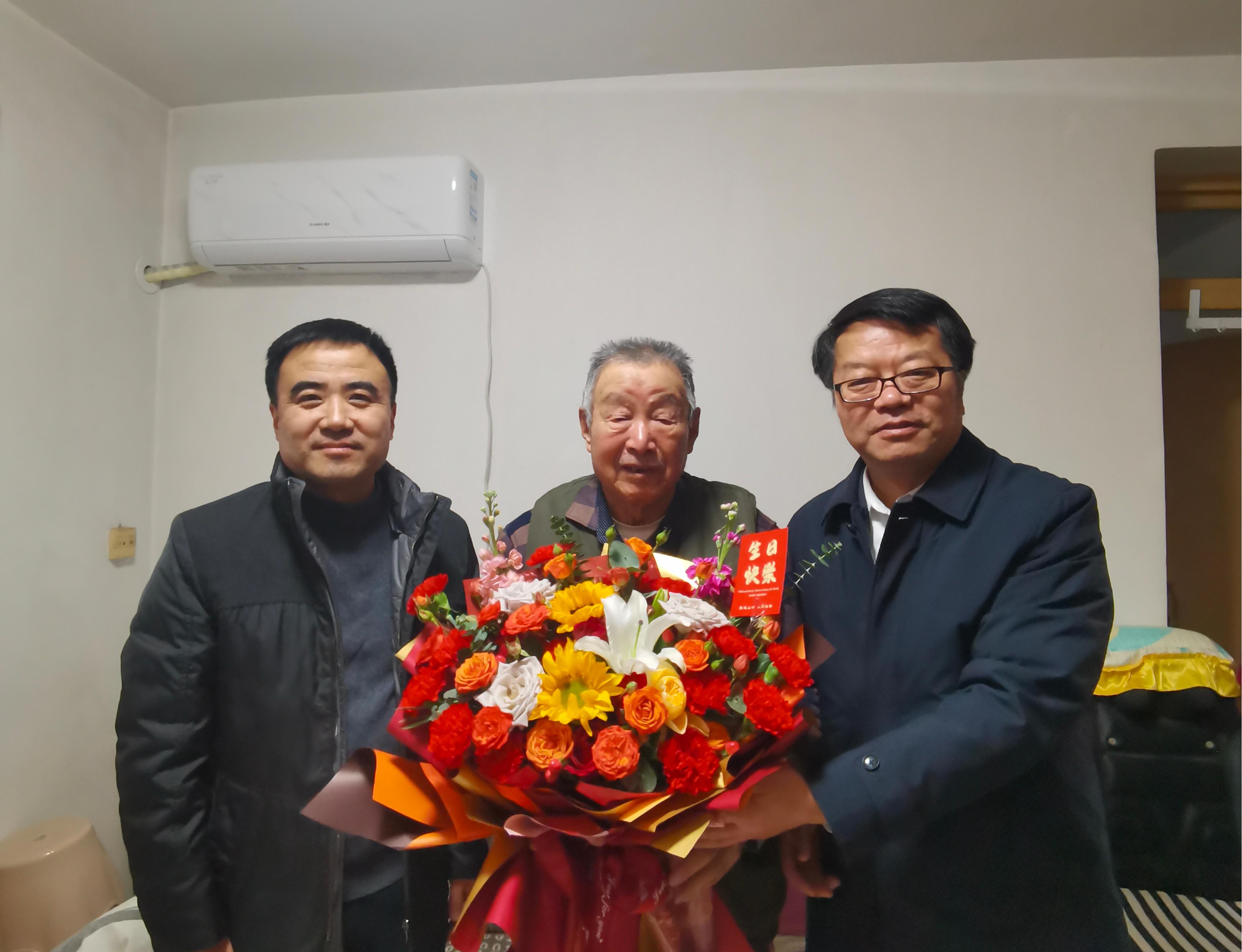 1月13日上午,在新春佳节即将来临之际,动漫狂 党委书记王雄与学校离退休处等领导一行前往动漫狂 退休教师陈新友老师家中看望慰问,向当天恰逢95岁高寿的陈新友老师致以生日祝福和新春问候。
