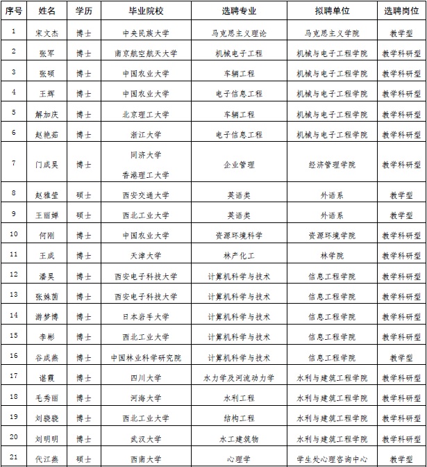 公示时间:2018年2月28日至2018年3月6日。 公示期间,如有异议,请以书面形式向西北农林科技大学人事处反映问题。联系电话:029-87082755