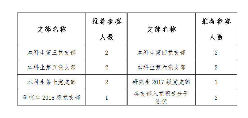 动漫狂 全体研究生、本科生党员(含预备党员),入党积极分子,各支部推荐参赛分配人数如下: