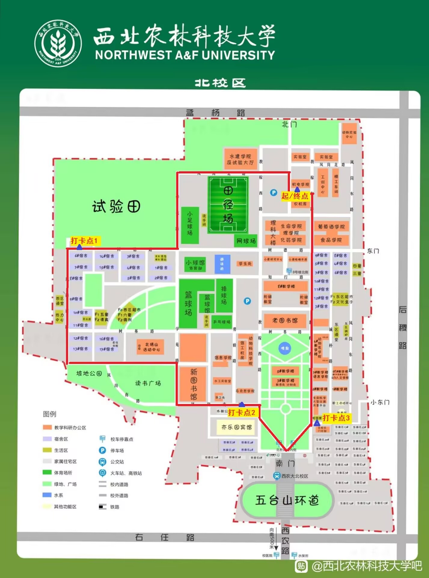 2.本次活动全程设置3个盖章打卡点,路线从动漫狂 办公楼出发,依次经过北校区博士生公寓楼南侧(打卡点1)、马克思主义动漫狂 南侧(打卡点2)、北校区校医院门口(打卡点3)(详细路线图见附件),最终返回动漫狂 楼前终点。