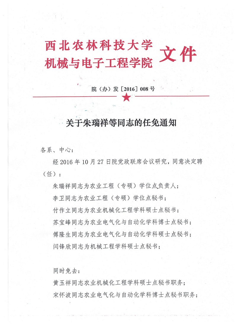 院(办)发[2016]008号关于朱瑞祥等同志的任免通知
